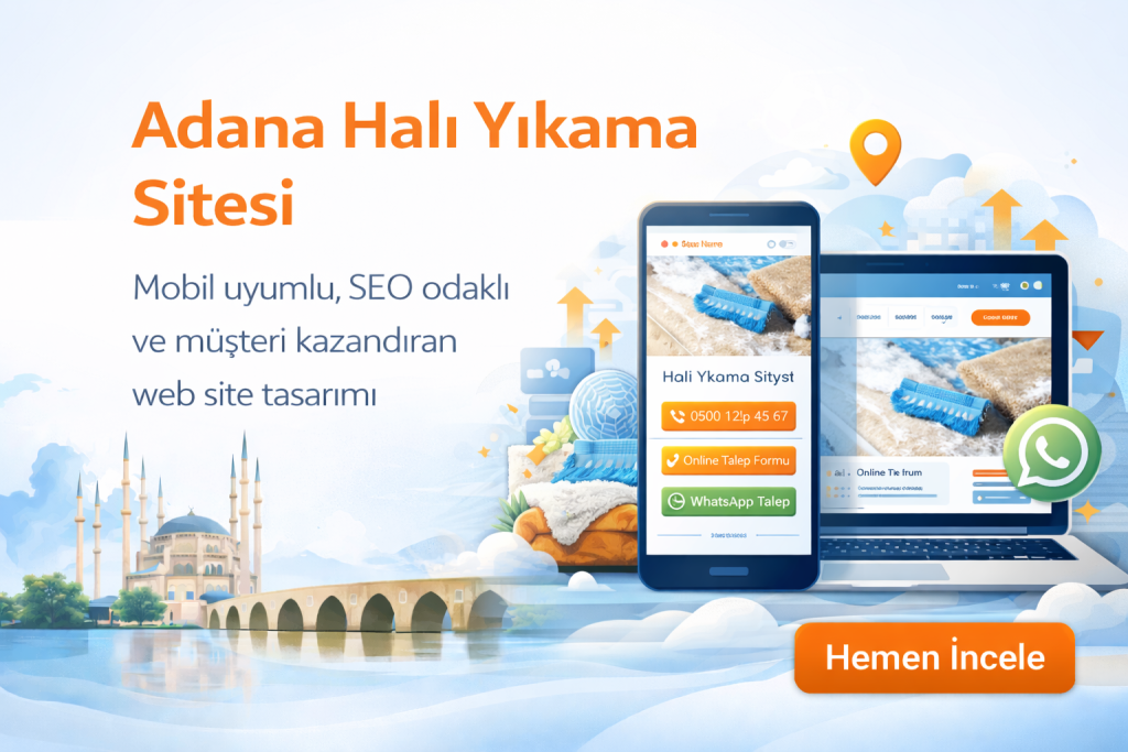 Adana gibi rekabetin yoğun olduğu şehirlerde, profesyonel web sitesi olmayan firmalar dijitalde geride kalır. Adana halı yıkama sitesi ile bölgesel hedefleme, mahalle bazlı SEO ve hızlı iletişim avantajı elde edersiniz.